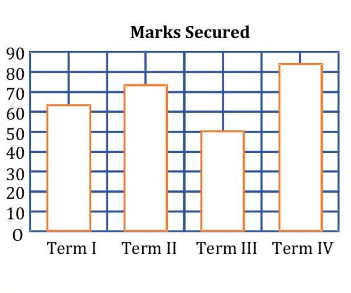 Q. The graph shows the marks scored by Rahul in the four terminal exams. (i) In which term did Rahul score the most and how much ? (ii) What is his lowest score and in which term? (iii) What is the scale used to draw the graph ?