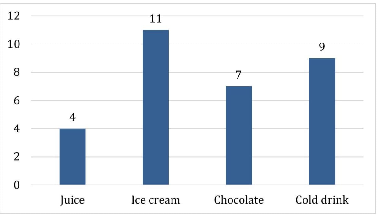 Step 2: Mark points at equal intervals along the x -axis. Below these points write the names of the data items whose values are to be plotted. Step 3: Choose a suitable scale. On that scale determine the heights of the bars for the given numerical values.