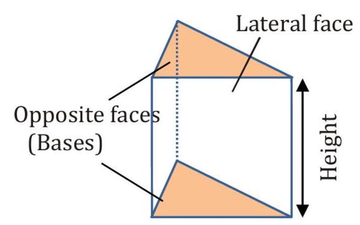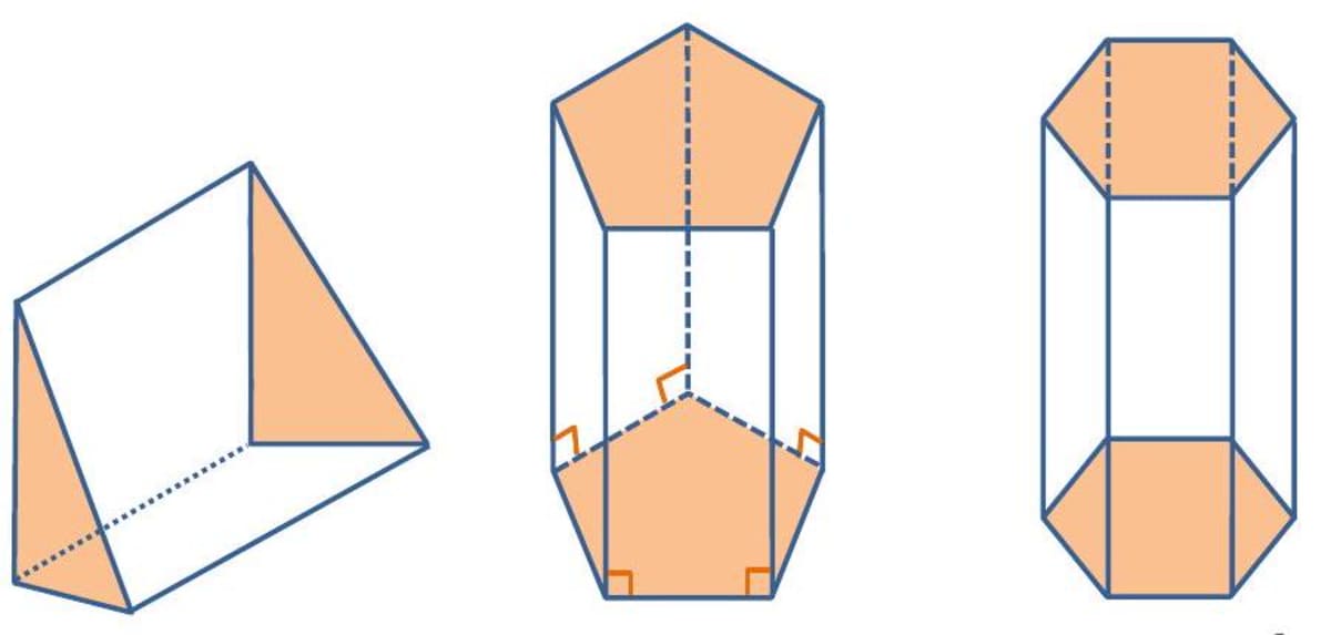 (i) The perpendicular distance between the two bases is the height of the prism. (ii) A right prism is a prism in which the bases of the prism are perpendicular to the lateral faces.