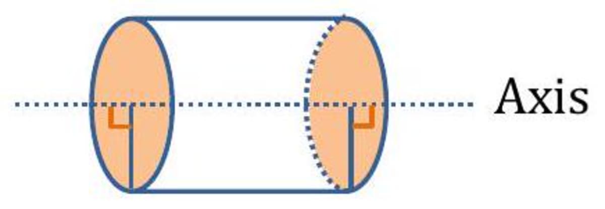 (i) The perpendicular distance between the two bases is the height of the cylinder. (ii) A right cylinder is a cylinder in which the axis is perpendicular to the bases.