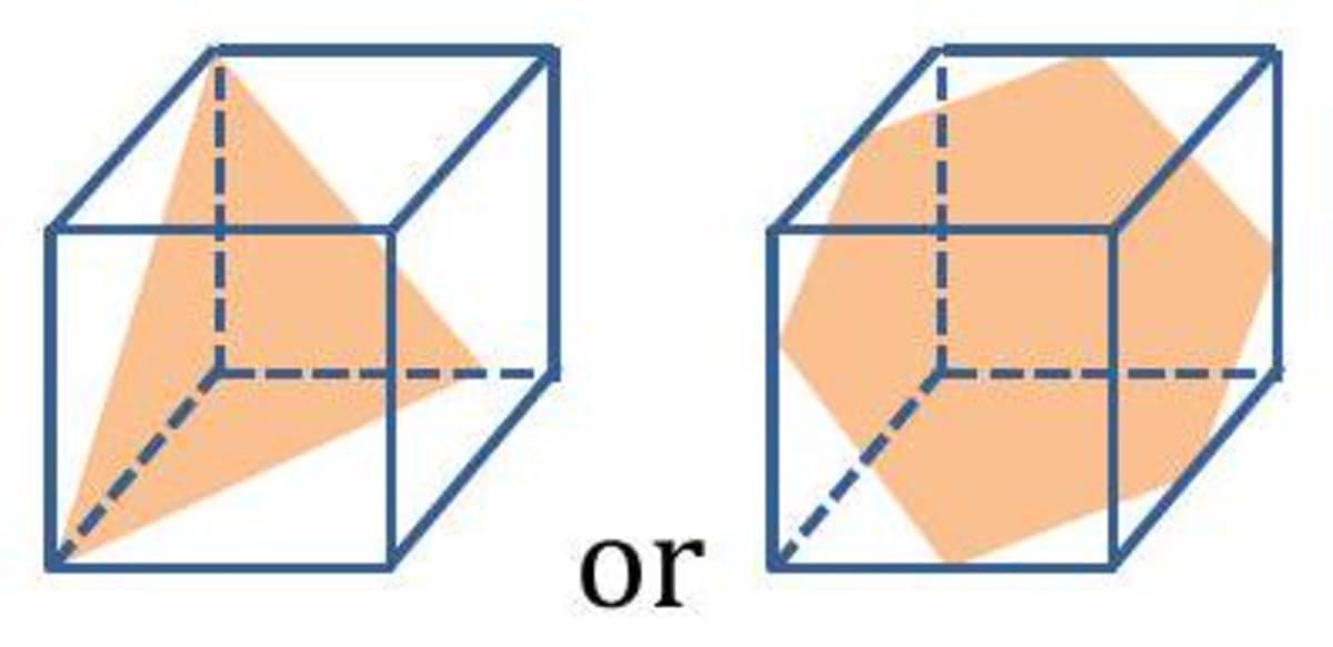 The figures given below show the cross-sections of an oblique cut of a cube.