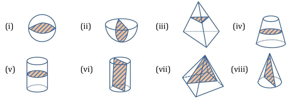 Q. Name the shape of the cross-section in each solid?
