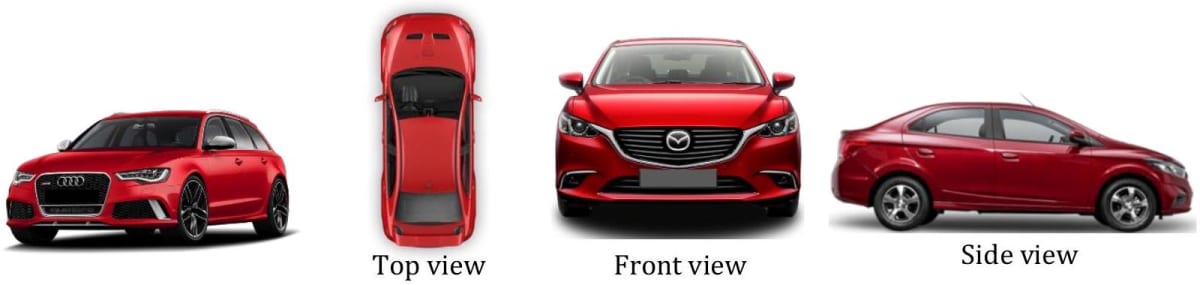 The pictures given below show the two-dimensional drawings of a car which is a threedimensional object.