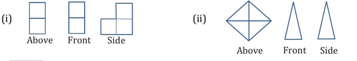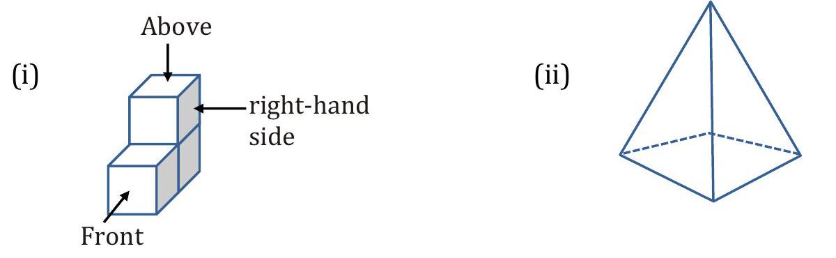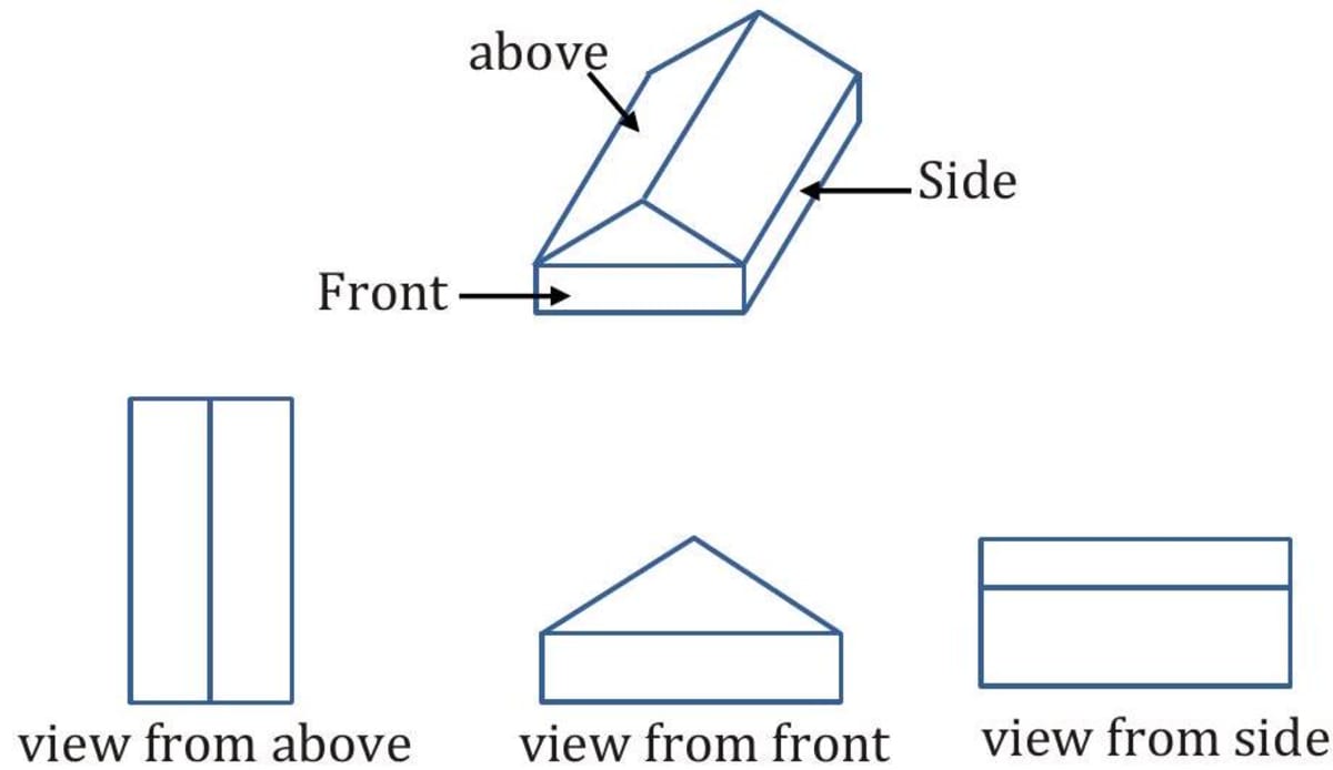 We can use 2-D representations of 3-D shapes to help us to visualise them. A solid can be viewed from different directions, i.e., from above, from front, from side. We can use these views to visualise what the whole solid looks like.